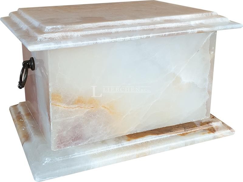 Urna wykonana ze szlachetnego kamienia naturalnego jakim jest onyx. Ręcznie wykańczana i polerowana. Ozdobiona złoconymi rączkami.