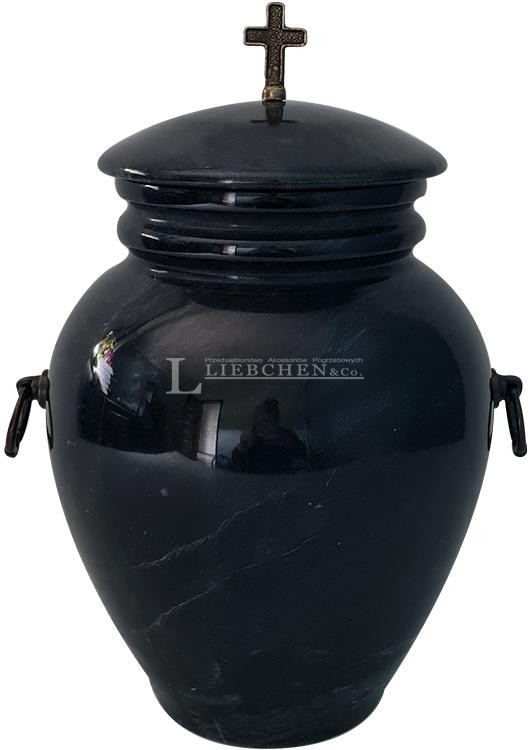 Urna wykonana z jasnego, polerowanego na wysoki połysk onyxu. Ozdobiona złoconym krzyżykiem u szczytu oraz złoconymi uchwytami.